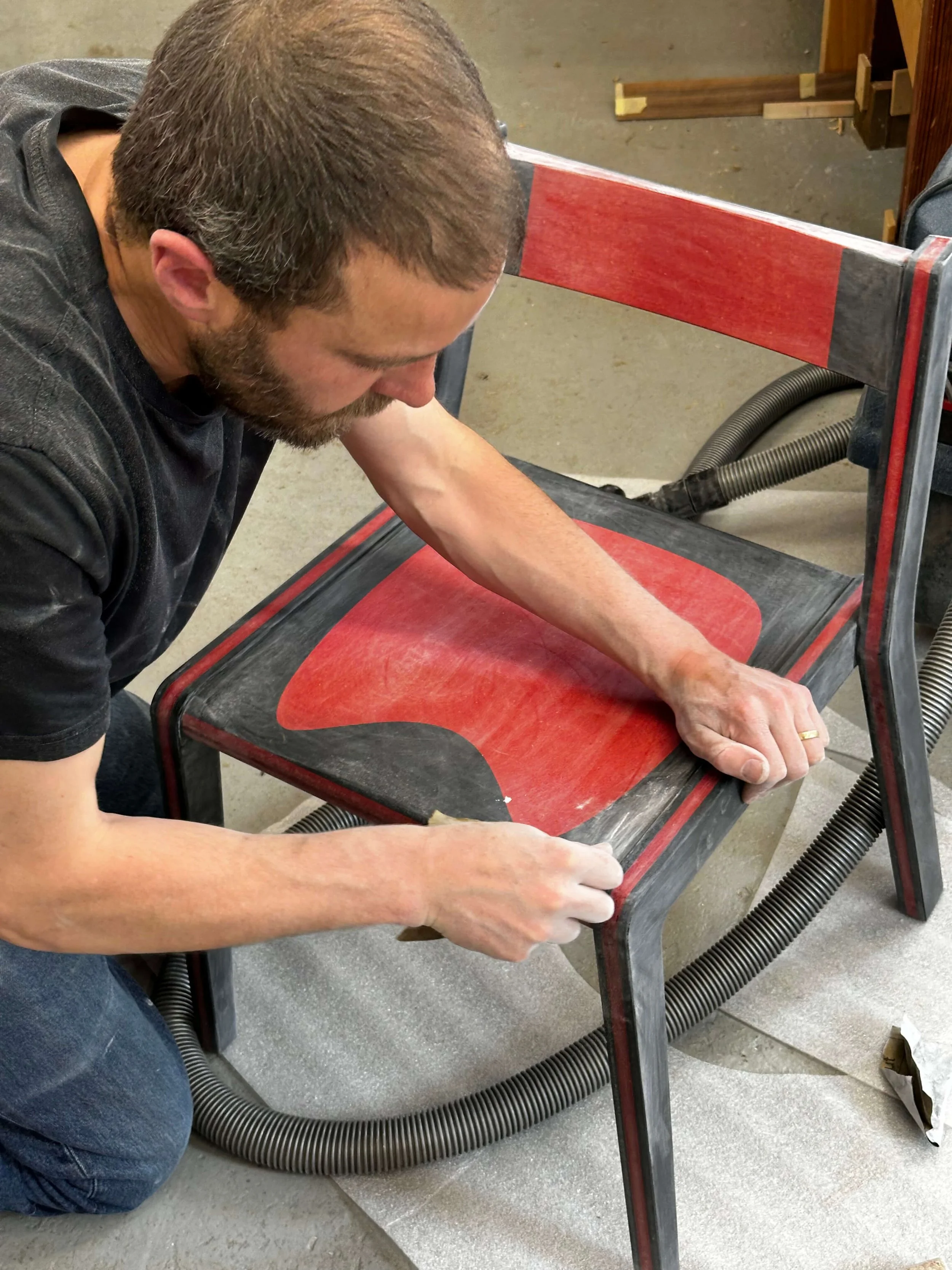 Shortlisted for the Empty Chair Design Award, this project was designed in response to the symbolism of an empty chair to represent excluded or marginalised people. Laminated layers of Valchromat are shaped with a CNC router to create a contrasting seat, intended to draw attention to the emptiness of the chair when vacant.